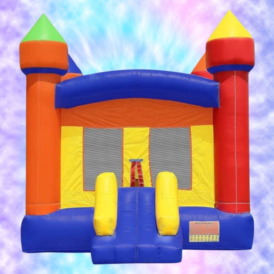 The perfect simple yet fun bounce house features a small slide in front and a basketball hoop inside! These bright colors will catch all the kids' eyes! Provide hours of jumping entertainment, let the kids get their energy out!