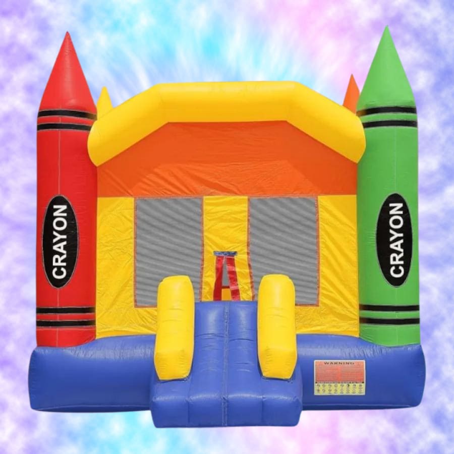 The Crayola Bounce House features a unique and playful crayon design that will instantly capture the attention of children. Its bright colors and fun shapes make it a standout attraction at any event. Perfect for your artistic, coloring loving little ones!