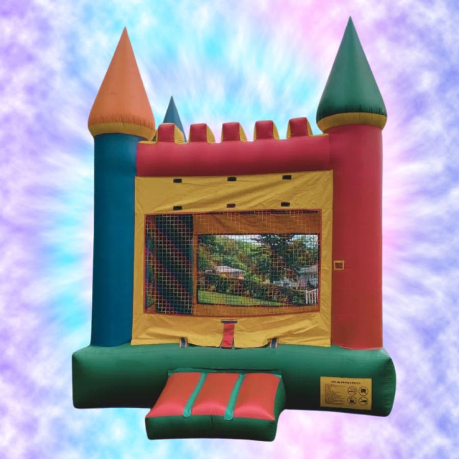 This bright colored bounce castle is sure to catch the attention of all the kids! This inflatable has 4 pointed posts on top in primary colors, and large mesh lined openings to allow kids to communicate with others outside the bounce house and stay safe inside. This colorful inflatable offers hours of fun to children of all ages!