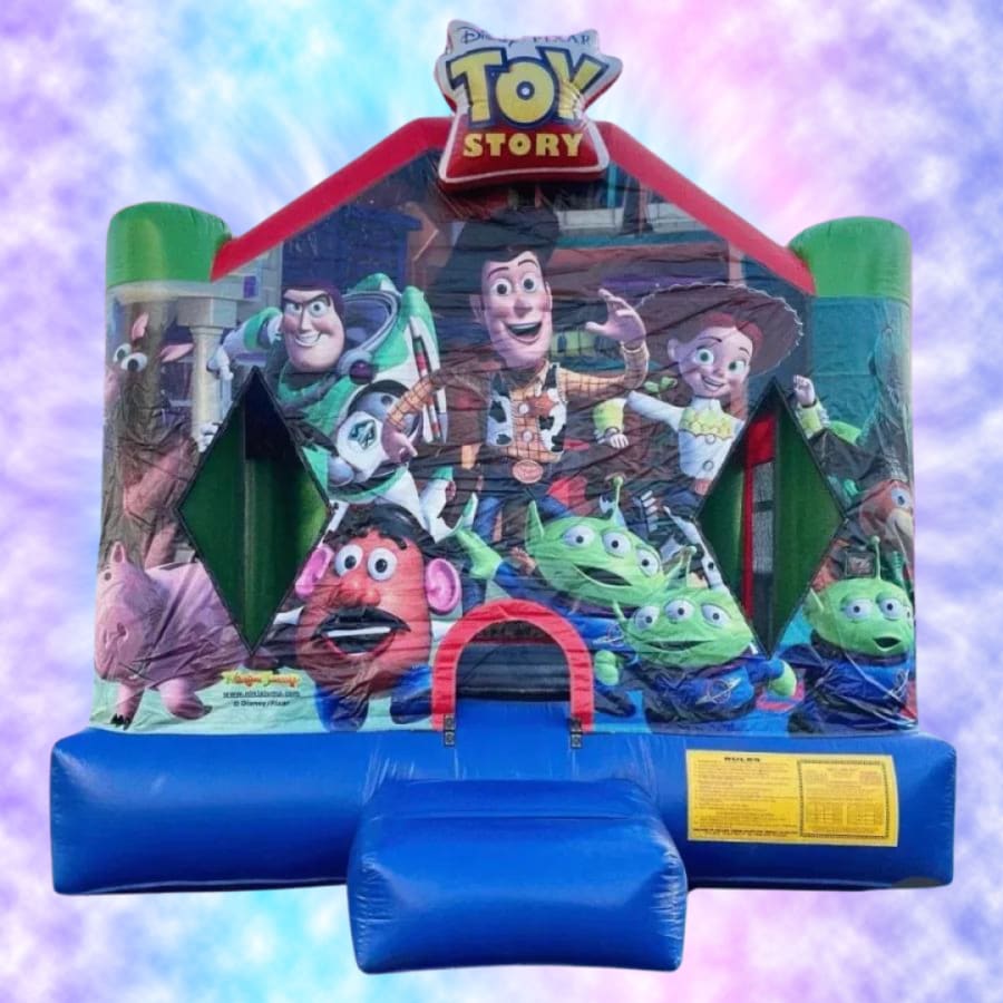 Jump in and bounce with your favorite Toy Story characters Woody, Buzz, Jessie, Rex, Slinky Dog, even Mr. Potato Head and the aliens. The Toy Story Bounce House is the perfect traditional bounce house with your favorite Pixar movie, Toy Story! Toddlers and kids of all ages will enjoy seeing their favorite Toy Story characters buzzing up and down in the awesome bounce house. Don’t hesitate today to book this popular and fun bounce house rental, simple yet fun enough for all the kids! Even adults will enjoy seeing their beloved characters from a popular franchise come to life.