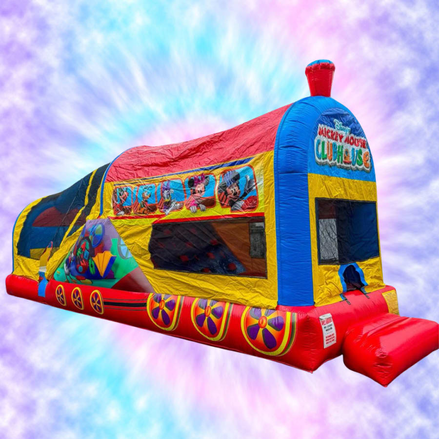 🎉 All aboard the fun express with our Mickey Mouse Train Clubhouse combo bounce house rental! 🚂 This 3-in-1 inflatable unit features an exciting obstacle course, a thrilling slide, and a spacious jumping area, all in one fantastic package. Whether you're planning a birthday party, a school event, or a church festival, this versatile combo unit is sure to keep the kids entertained for hours on end.