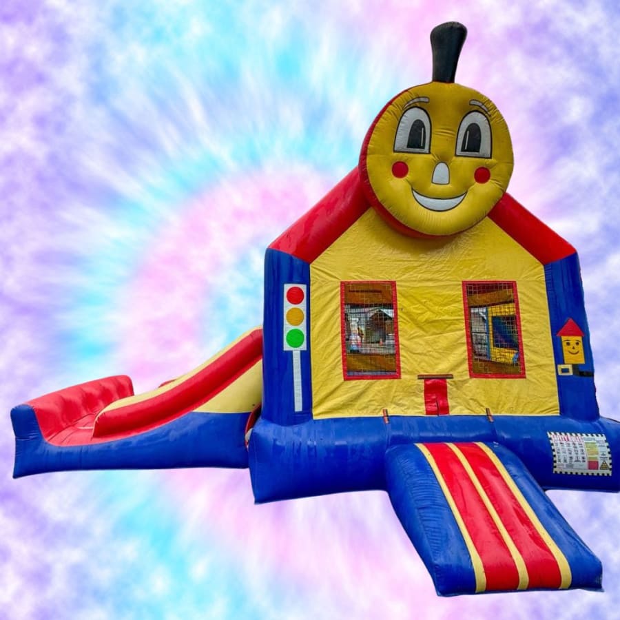 🚂🎉 Get ready for an unforgettable adventure with our Train Combo Bounce House! Perfect for little conductors and train enthusiasts, this inflatable attraction features a spacious jumping area and an exciting slide for hours of entertainment.