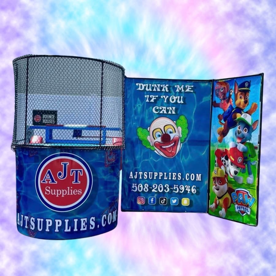 Ask us about different side banner options! Dunk Tanks rentals are great fun! Imagine your teacher, boss, pastor, mayor or best friend is just sitting on the seat in our Dunk Tank waiting to be dunked into 350 gallons of water. You launch the ball at the target and it's either a hit and a splash or a miss and a boo! Rent our dunk tank for your next party or special event.