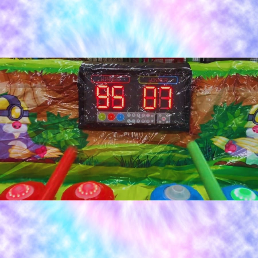 Get ready for head-to-head action with Zap-A-Mole! This inflatable version of the beloved arcade game pits two players against each other to hit as many lit targets as possible in just 45 seconds. Stay sharp, move fast, and rack up points before time runs out.