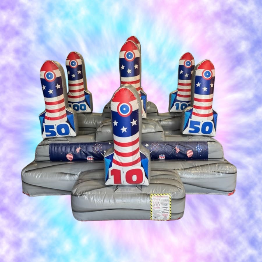 The Firecracker Rocket Ring Toss is an eye-catching inflatable that brings instant excitement to any summer event. This action-packed game puts a thrilling spin on classic ring toss, challenging players to land their rings on bold, colorful rockets for that satisfying “got it!” moment. With its vibrant design and fast-paced gameplay, it naturally draws a crowd and keeps the fun going all day long—making it a standout attraction for backyard parties, school events, and summer festivals across MA and RI. 🎆